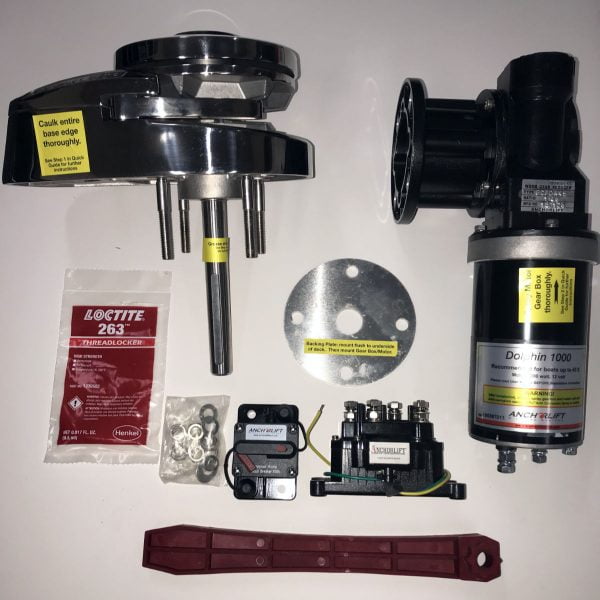 Included with Purchase: Windlass Unit, Motor & Gearbox, Solenoid, Circuit Breaker, Handle, Gear Box Backing Plate, EPDM Base Gasket, Thread Locker, Hardware, Mounting Template and Installation Quick Guide.